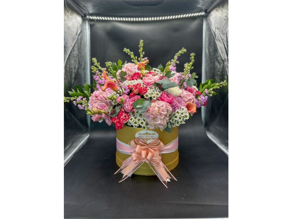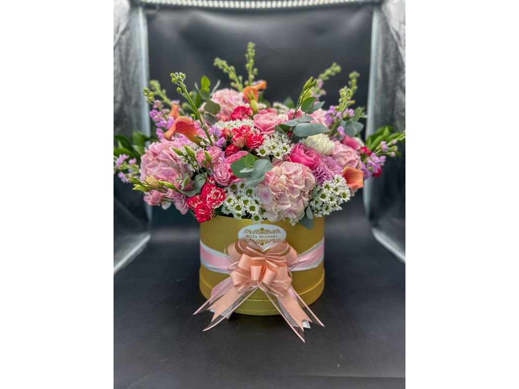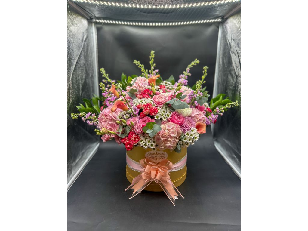 The box contains a combination of soft pink and white flowers, forming a romantic and fresh arrangement. It is an ideal choice as a gift of love, for birthdays, or as a luxurious gesture for a woman who deserves something truly special. Its richness of flowers and colors creates a breathtaking impression at first sight.