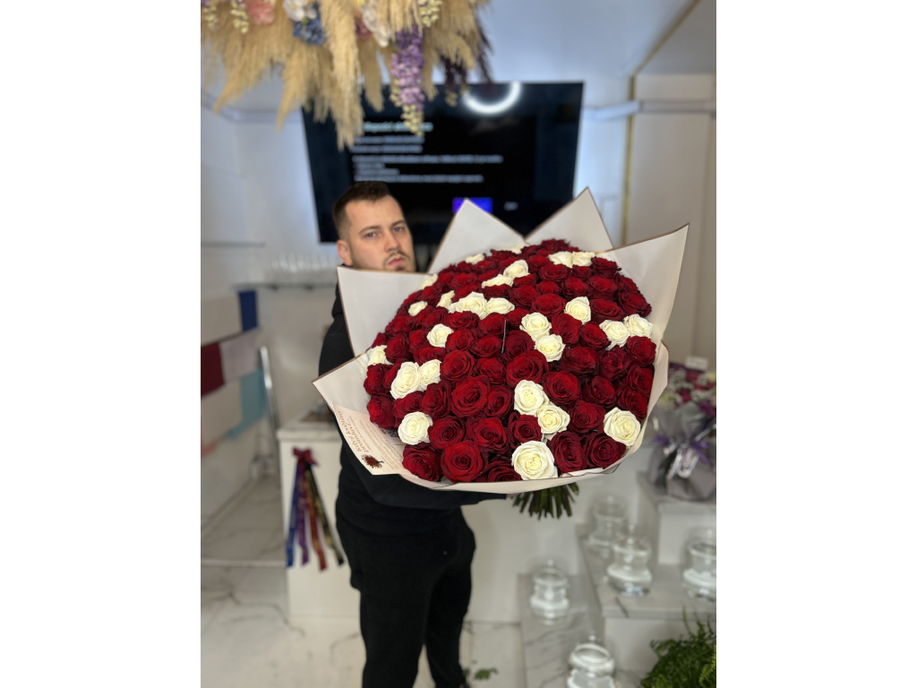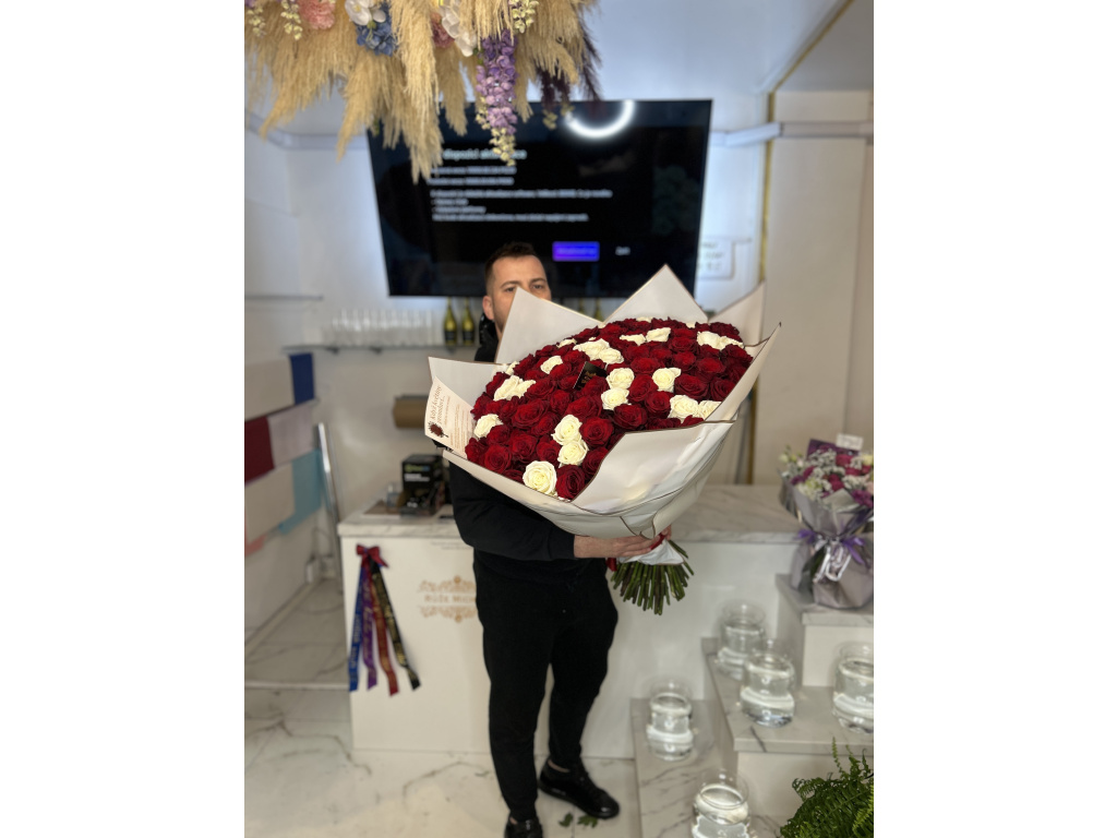 bouquet of 101 roses - red/snow white