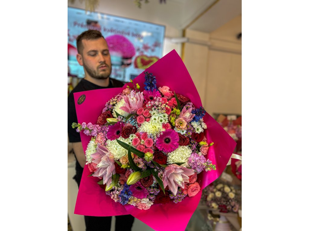 Darujte radost, která doslova bere dech 🌸✨. Tento jedinečný pugét spojuje pestrost barev i bohatství tvarů a je symbolem elegance, luxusu a radosti. Díky své kompozici se hodí jako exkluzivní dárek pro narozeniny, výročí, zásnuby i jako překvapení z lásky.