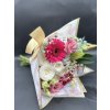 Kytice „Inspirace 11“ je dokonale vyváženou kombinací jemných barev a elegantních květin. Bílá trsová růže a lilie tvoří základ této krásné kompozice, kterou doplňují růžové gerbery a něžné eustomy. Barevná gypsophila přidává na hravosti, zatímco bílé santinky dodávají celkové aranži lehkost a čistotu. 💐