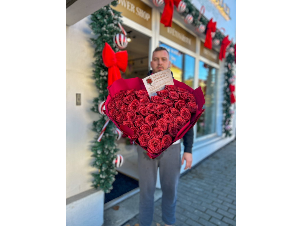 Překvapte svou drahou polovičku jedinečným dárkem – kyticí růží ve tvaru třpytivého srdce. 💖 Tato kytice kombinuje romantiku s luxusem a dodá každé příležitosti nezapomenutelnou atmosféru. Dokonale uspořádané růže s jemným třpytem vytvářejí nádherný efekt, který osloví každého obdarovaného. 🌟