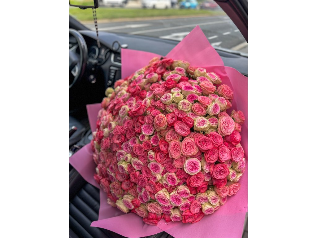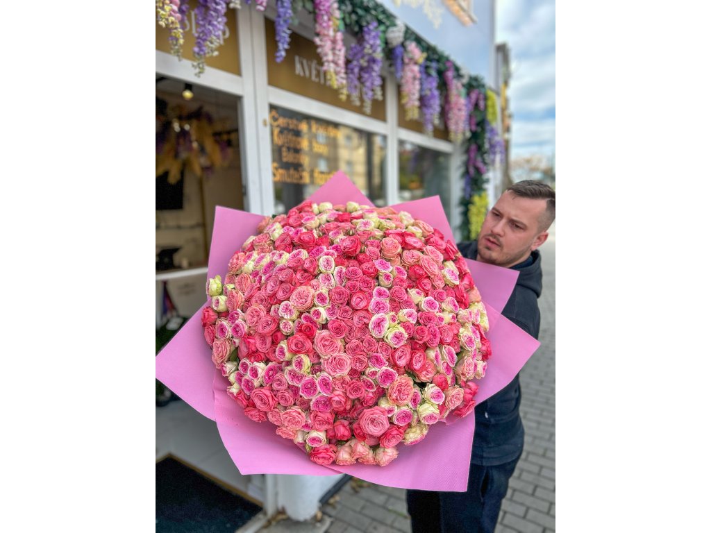 Tento velkolepý puget z trsových růží v různých odstínech růžové a krémové barvy je symbolem něhy, romantiky a elegance. Každá růže je dokonale vybrána, aby vytvořila harmonický a bohatý celek, který nadchne svou intenzitou a luxusním vzhledem. 🌸🌹