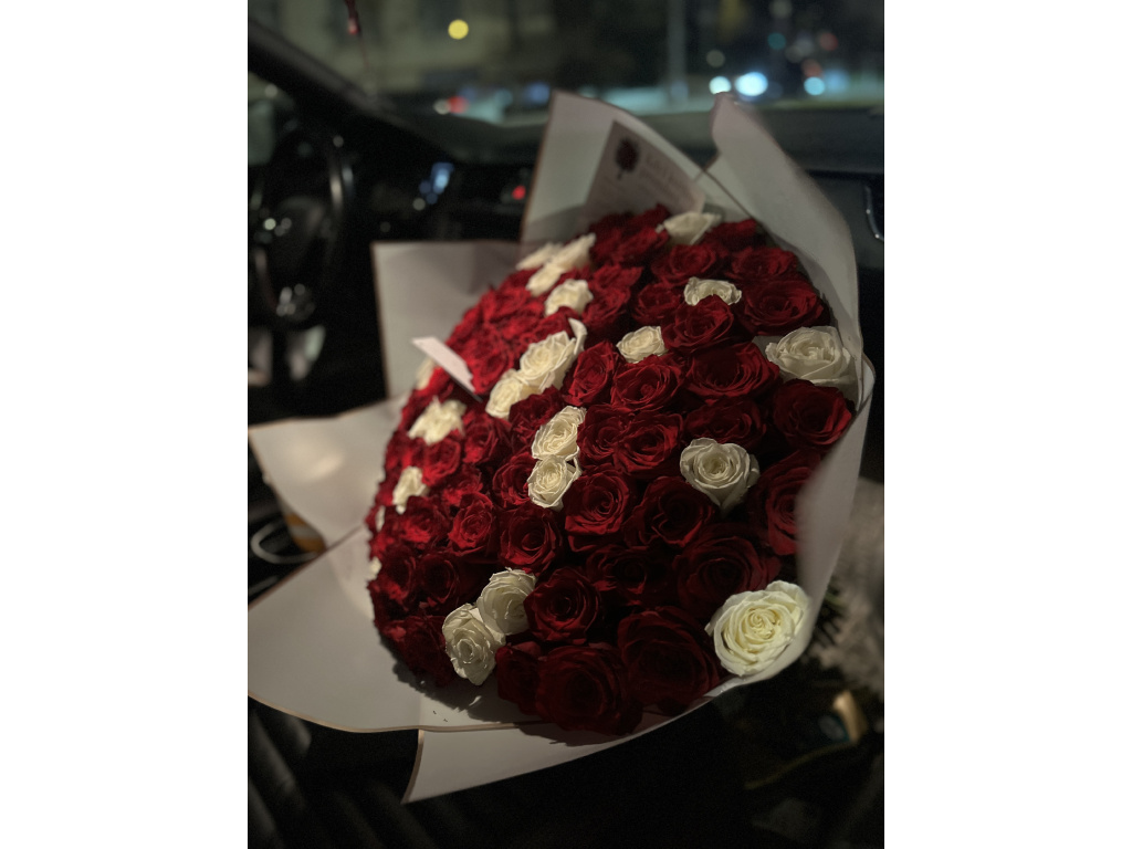 ❤️🤍 Puget 101 růží – rudá/sněhově bílá